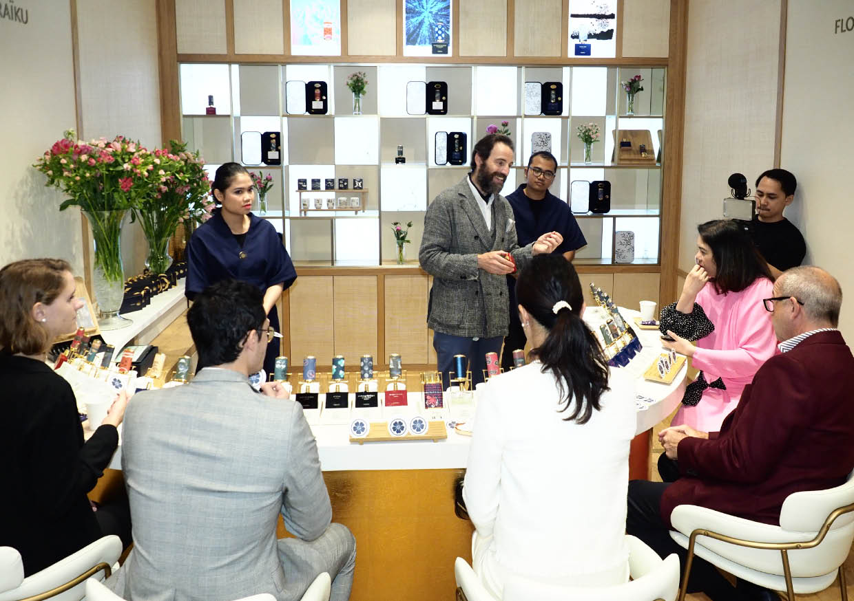 John Molloy selaku co-founder dari Floraiku pun hadir menjelaskan bahwa memilih parfum itu seperti seni yang tidak bisa diburu-buru. “Sit back, relax and choose it wisely. Memilih parfum itu harus santai dan sesuai dengan hati. Kalau perlu, setelah Anda mencoba beberapa koleksi kami, Anda bisa berkeliling mall hingga 1 jam lalu kembali untuk memilih.” paparnya.