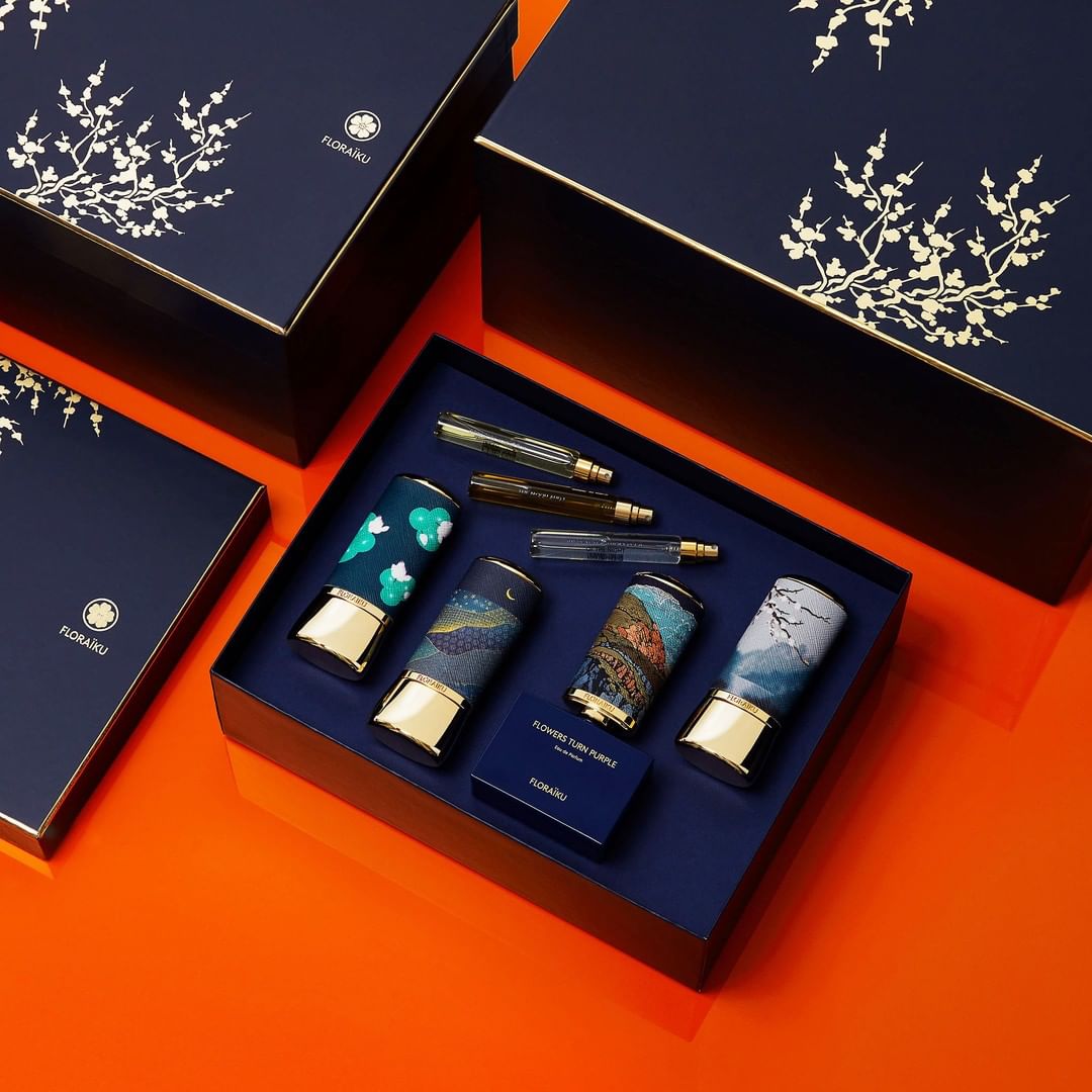 Parfum Floraiku terdiri dari lebih dari 50% bahan-bahan alami. Ketiga koleksi Floraiku adalah bunga, teh, dan kayu. Koleksi bunga merupakan jenis wewangian yang paling ringan, diikuti oleh teh yang cukup kuat, serta koleksi kayu yang tajam namun sangat nyaman. Setiap koleksi memiliki key guiding note yang berbeda-beda dan dapat dilihat berdasarkan warna botol yaitu navy blue (bunga), putih (teh), dan hitam (kayu).