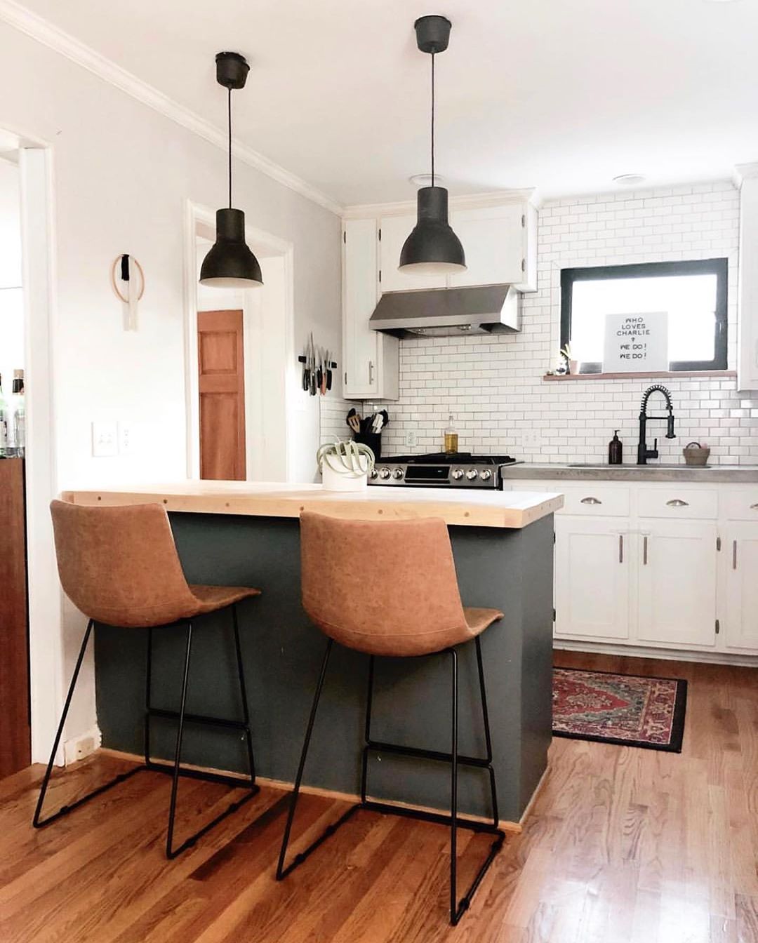 Setelah memasang island tentunya Anda bisa menambahkan tempat duduk untuk menikmati makan malam santai atau kopi pagi. Kursi bar bisa menjadi pilihan yang cocok untuk meja tambahan ini.