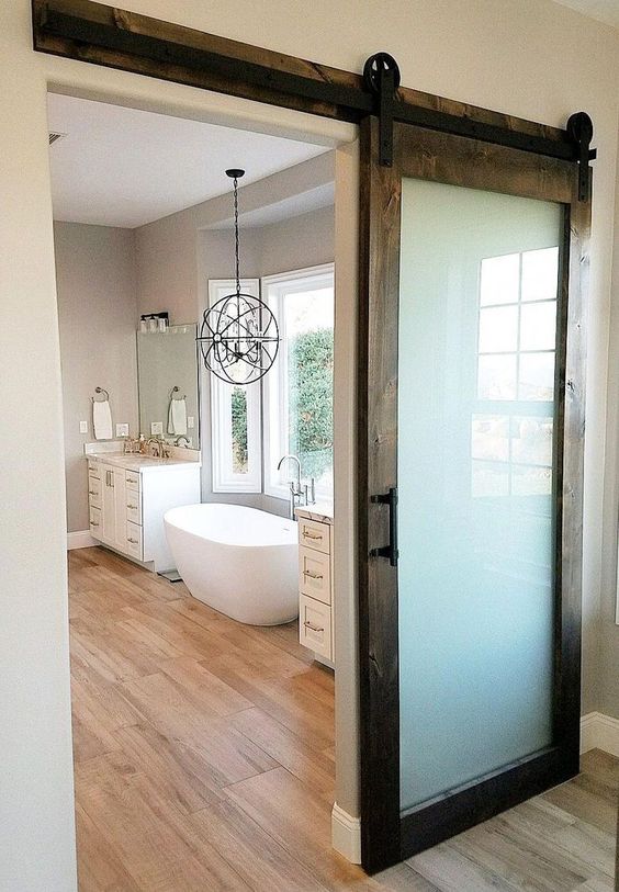 Berbeda dengan pintu geser material kayu, pintu geser kayu dengan panel kaca ini tetap memberikan efek privasi dan memberikan konektivitas dengan ruangan lain secara bersamaan. Seperti ruang keluarga dan halaman belakang, pintu ini dapat membantu pencahayaan matahari yang masuk dalam ruangan dan sirkulasi udara yang terasa lebih segar.