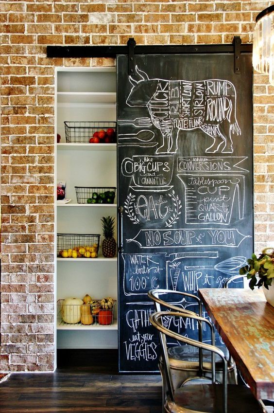 Dengan menyediakan pintu yang memiliki media tulis, pemilihan papan tulis sebagai panel bisa membantu Anda dalam memaksimalkan kreativitas. Anda tidak perlu repot dalam mencari kertas untuk mencatat. Pintu ini merupakan salah satu pintu geser yang cocok berada di dapur dengan pertimbangan dapat mempermudah Anda untuk menulis resep makanan yang mudah dilihat.