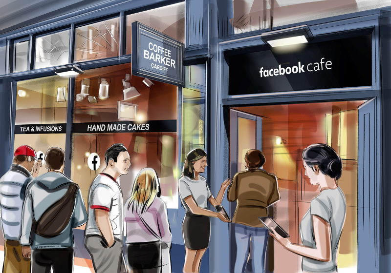 Pop-Up Facebook Cafe di Coffee Barker, Cardiff
