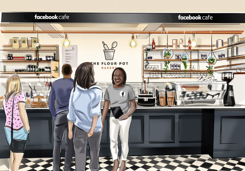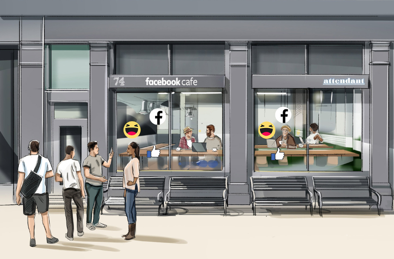 Facebook, sebuah perusahaan media sosial terbesar membuat gebrakan baru dengan membuka sebuah pop-up cafe di 5 kota besar di Inggris. Terpencar di 5 kota, pop-up cafe ini berada di kedai kopi yang sudah ada terlebih dahulu, sebut saja The Attendant di London, Takk di Manchester, The Flour Pot Cafe di Brighton, Union Brew Lab di Edinburgh dan Coffee Barker di Cardiff.
