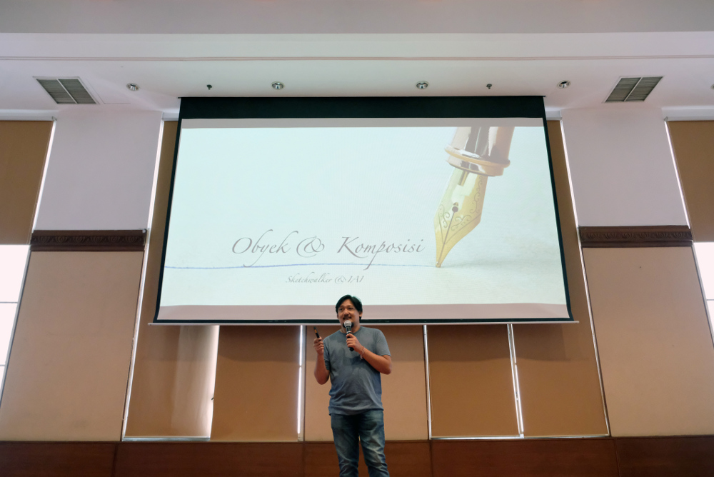 Sesi workshop Artyan Trihandono mengenai garis, arsip, pencahayaan
