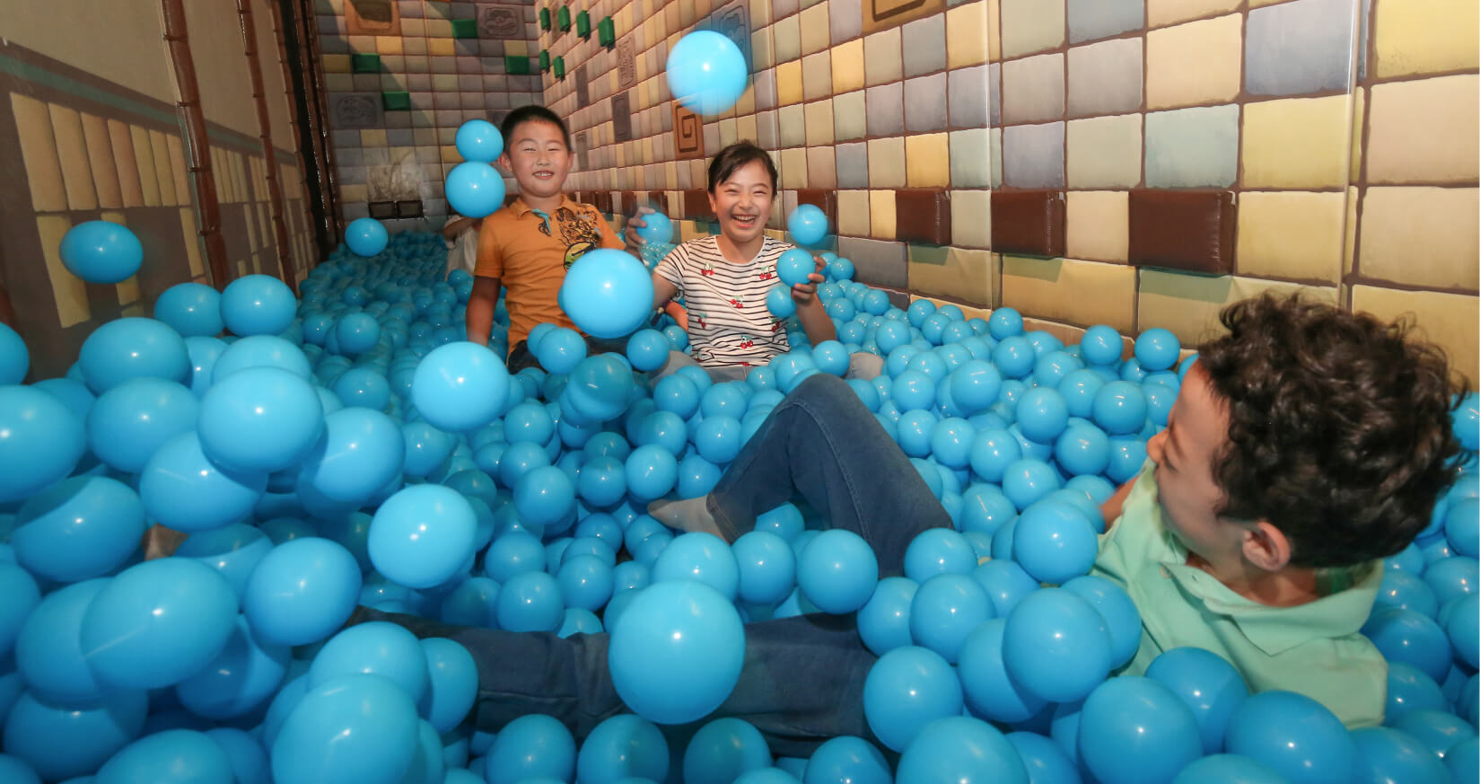 Tidak hanya VR, rintangan menggunakan bola juga digunakan dalam wahana Tombs of The Ancients/National Geographic Ultimate Explorer