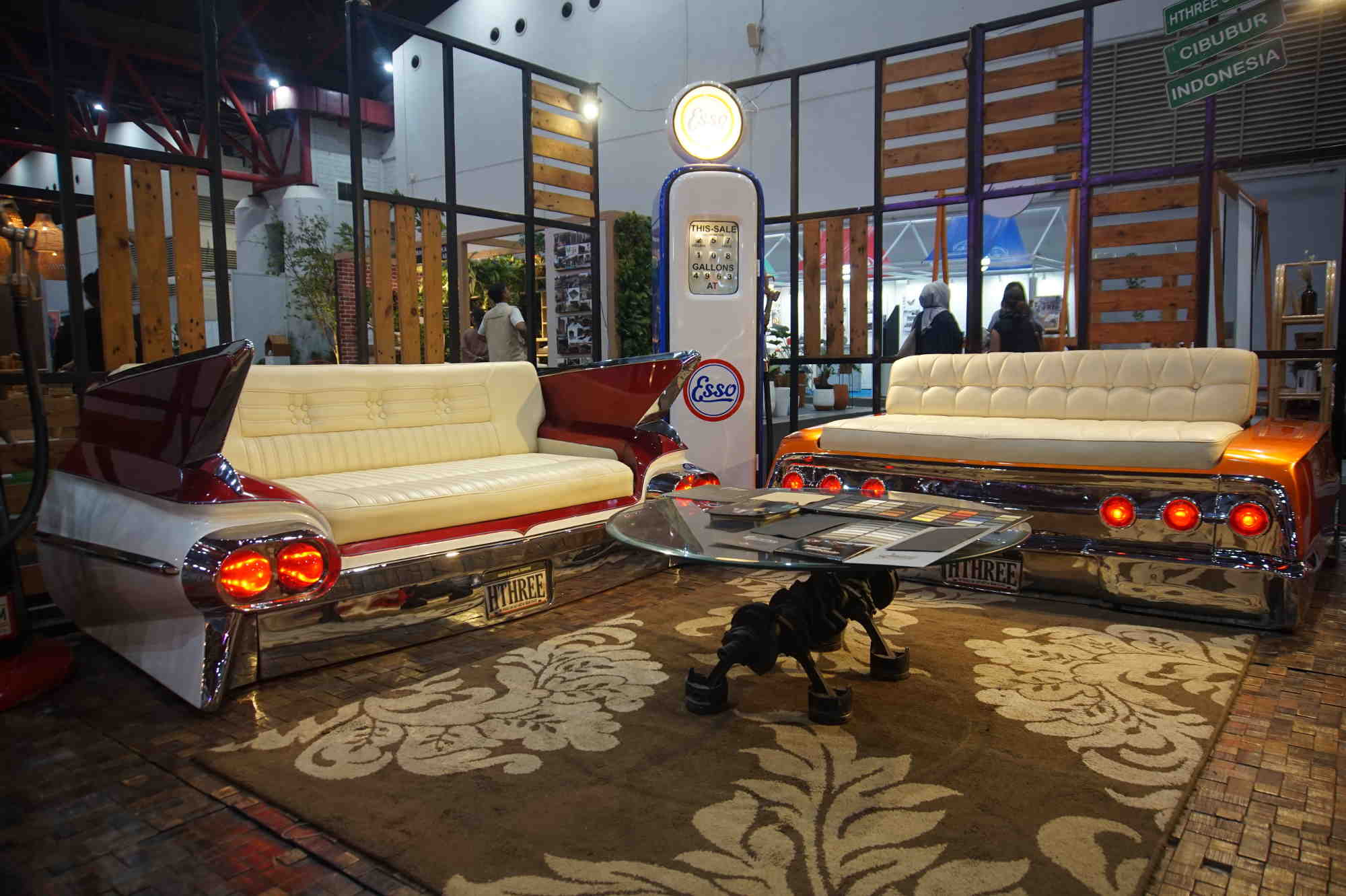Hal menarik lainnya yang bisa Anda temukan pada pameran Hospitality Indonesia 2019 adalah produk-produk furnitur eksentrik dari booth Parjo Garage. Parjo yang dulu fokus kepada sparepart otomotif dan custom builder kini mulai merambah ke produk-produk furnitur. Untuk pameran kali ini Parjo Garage berkolaborasi dengan Hendra Hakim Harahap, owner dan desainer dari HTHREE Custom Garage untuk membawa karyanya, classic car sofa.