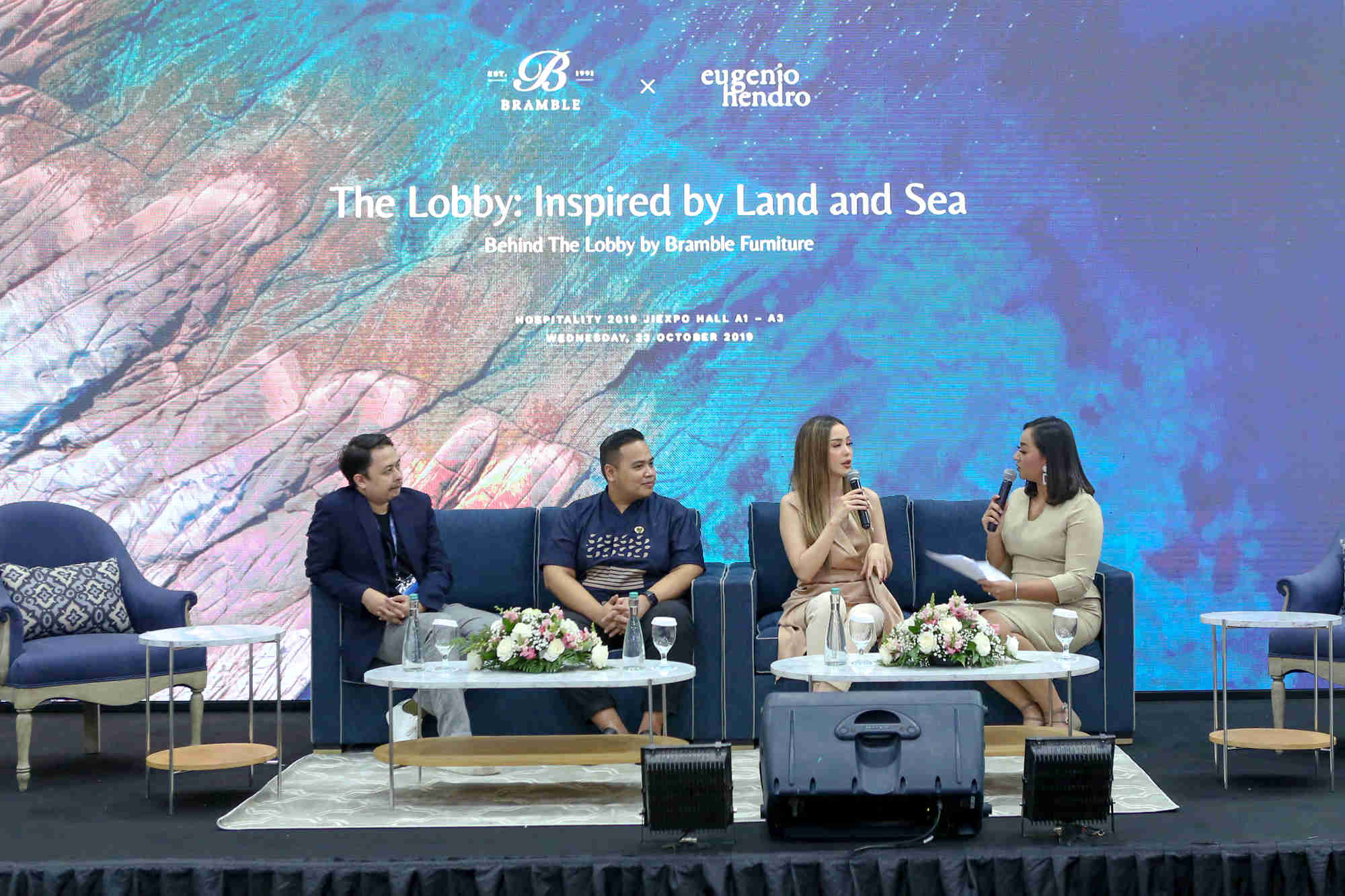 Daya tarik Hospitality Indonesia 2019 salah satunya dihadirkan oleh Bramble Furniture. Berkolaborasi dengan desainer Eugenio Hendro, dua instalasi berbentuk lobi hotel dengan tajuk The Lobby diluncurkan.