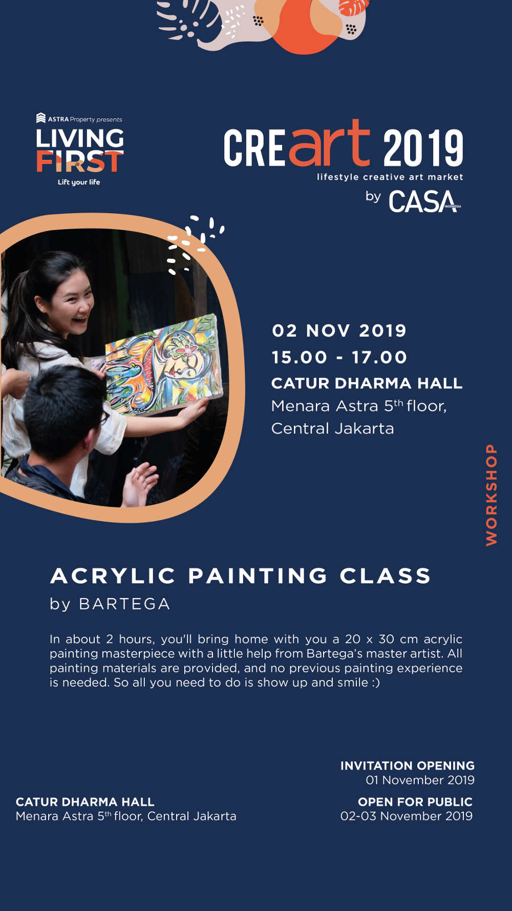 Mulai 1 November hingga 3 November, ASTRA Property bekerja sama dengan CASA Indonesia akan mengadakan pameran Creative Art Market (CREART) 2019.