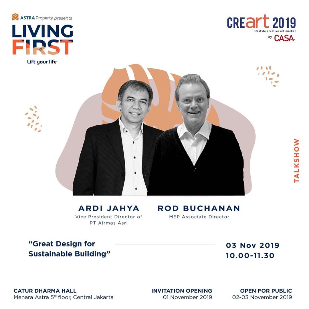 Salah satu talkshow yang sayang untuk dilewatkan adalah sesi bincang-bincang Rod Buchanan, Direktur MEP Associate dan Ardi Jahya, VP Director PT. Airmas Asri mengenai desain-desain hunian berkelanjutan (sustainable building).