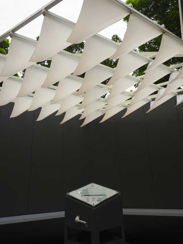 Didesain oleh Dion Pradipta (Hadivincent Architects) dan Wilson Harkhono (ONStudio), Catalyst menampilkan atap kinetik yang terdiri dari rangkaian teflon sheet persegi yang bisa dilipat dan dikembangkan menggunakan katrol yang terdapat di tengah ruangan.