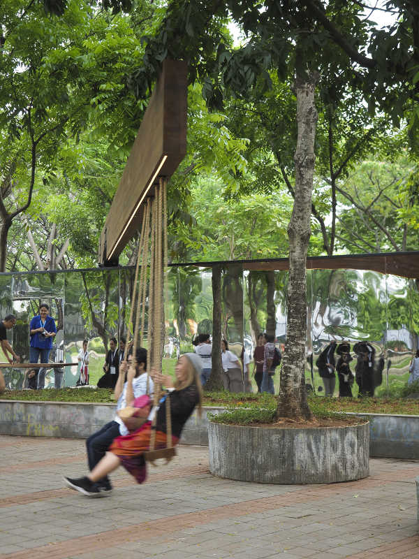 Instalasi unik bernama Tiga Tuba Tuba ini didesain oleh Aboday Architects. Didasari oleh pertanyaan filosofis tentang seberapa manusia dapat hidup berdampingan dengang makhluk hidup lainnya, instalasi community space dibuat untuk menjawab pertanyaan tersebut.