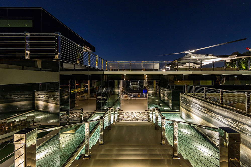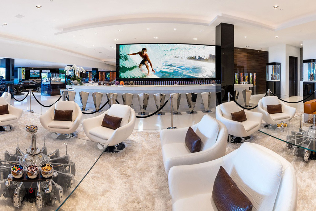 Anda tidak lagi membicarakan berapa ukuran kolam renang di rumah tersebut, karena arsitek dan desainernya telah membuat beberapa fasilitas extravaganza seperti lapangan bowling hingga home theater seukuran bioskop di mal. Kolam renang di rumah juga memiliki pemandangan tak terbatas di kota Los Angeles. Posisinya yang berada di perbukitan Bel-Air memungkinkan penghuni menikmati keindahan kota di rooftop lounge sambil berpesta bersama keluarga atau kolega saat matahari terbenam.
