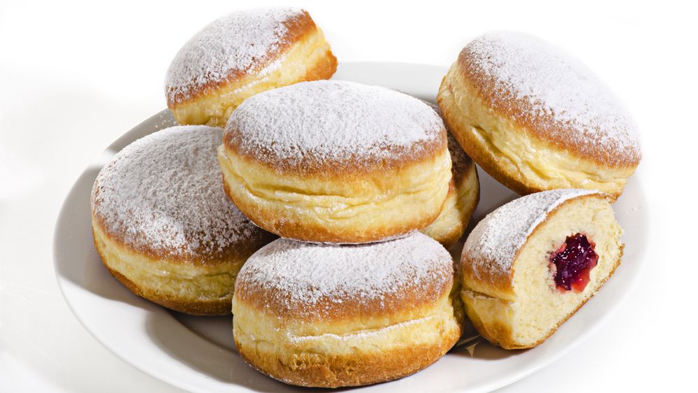 Krapfen menyerupai donat dengan isi selai buah dan taburan tepung gula di atasnya / Kabel Eins