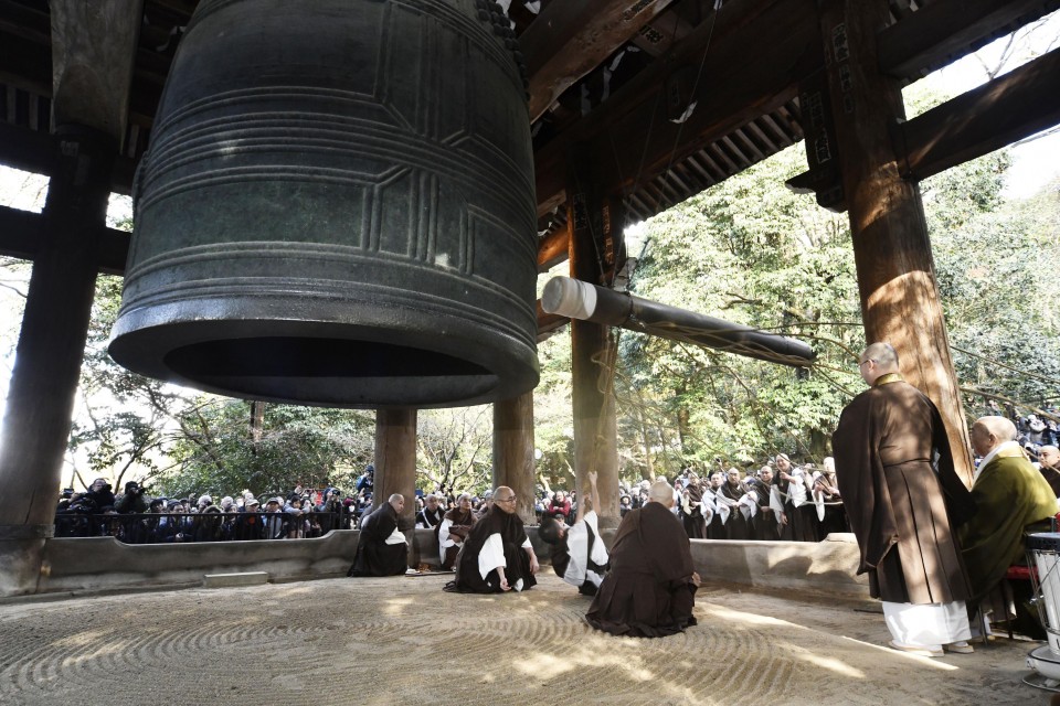 Suasana pembunyian lonceng yang dilakukan biksu-biksu di kuil / Kyodo News