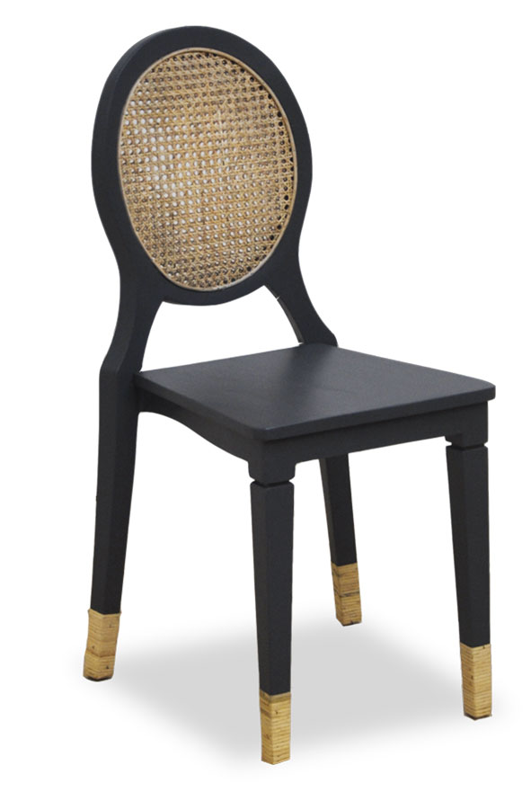 Untuk area dining room, Menur Medallion Chair mengemas anyaman rotan natural pada back rest yang berbentuk oval.