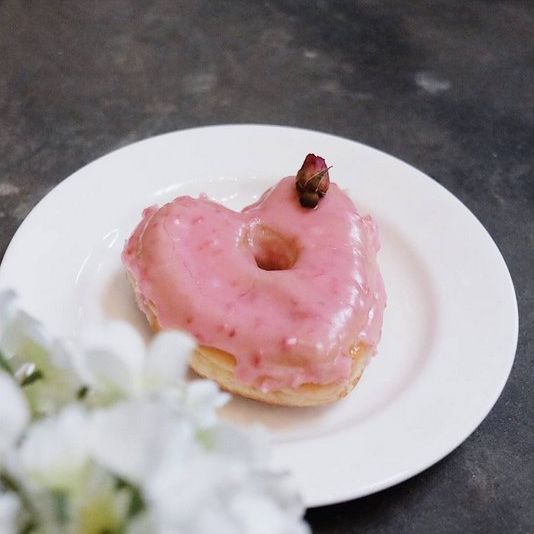 Rasanya, tidak ada yang tidak suka donat. Ditambah bentuk hati, manisnya donat ini semakin membuat penasaran dengan campuran rasa raspberry, leci, dan mawar.