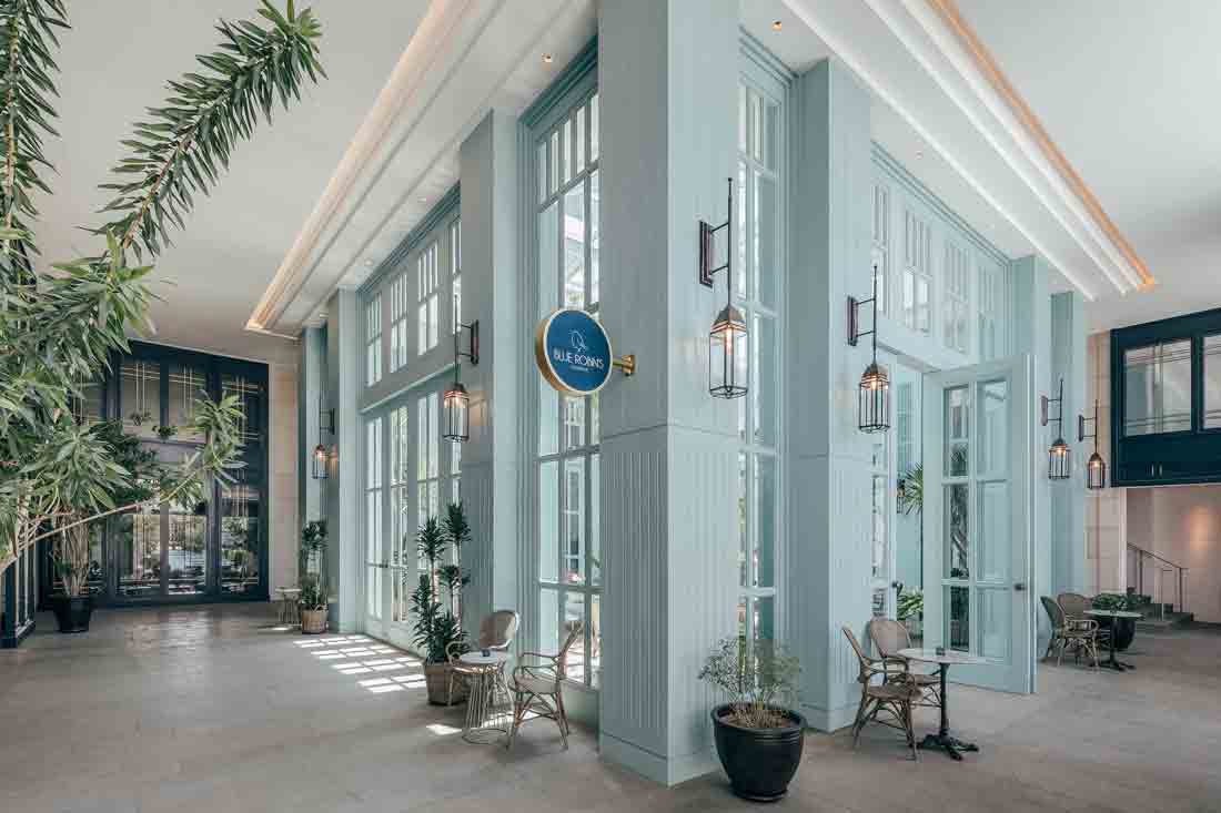 Sejak memasuki pekarangan resor, tampak fasad bergaya kolonial modern berdiri dengan anggun dalam dominasi warna putih. Bagian pertama yang ditemui tamu saat bertandang ke Kanvaz Village Resort adalah Blue Robin, sebuah dining spot dalam balutan warna tiffany blue yang menyegarkan. Pada akhir tahun ini, Kanvaz Village Resort menampilkan suasana berbeda di dalam Blue Robin dengan pohon Natal karya seniman lokal Gabriel Aries Setiadi asal Bandung.