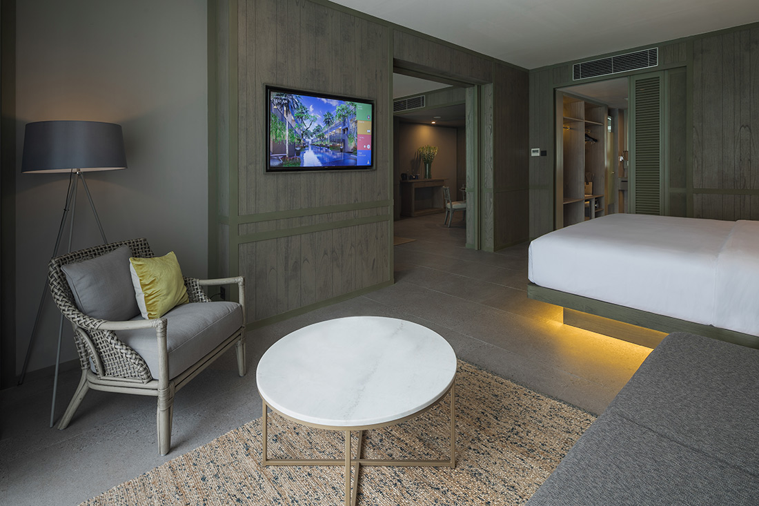 Memasuki bagian kamar Kanvaz Village Resort, suasana urban dan modern mendominasi interior ruangannya. Palet warna monokromatis dan warna-warna alam memberi kenyamanan untuk memanjakan diri sembari bersantai di tepi kolam renang. Dinding yang dihiasi kain batik ikat celup di atas tempat tidur hasil karya perajin lokal menjadi aksen unik sekaligus menambah nilai estetika ruang di kamar Kanvaz Village Resort.Â