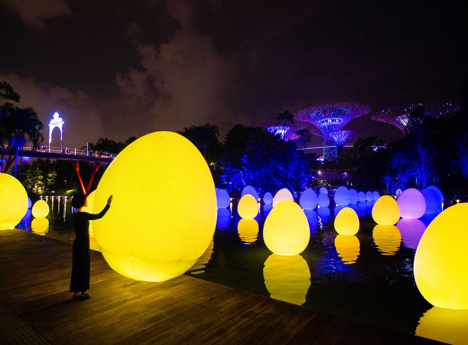 Rentetan ovoid berbentuk telur tersebar di permukaan Dragonfly Lake, Garden by The Bay. Saat tiap pengunjung bersentuhan dengan ovoid, warna instalasi akan berubah dan menghasilkan suara yang berbeda dari tiap warnanya. Maka dari itu, saat sejumlah orang menyentuh ovoid ini aneka ragam warna pun tercipta sembari menandakan keberadaan manusia lainnya. Ini seakan merepresentasikan konektivitas dalam hubungan antar manusia di kehidupan ini.