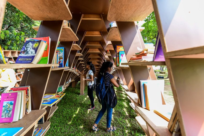 Studio arsitektur India Nudes telah merancang paviliun BookWorm yang berkelok-kelok untuk mendorong minat baca kalangan anak-anak dan orang dewasa.