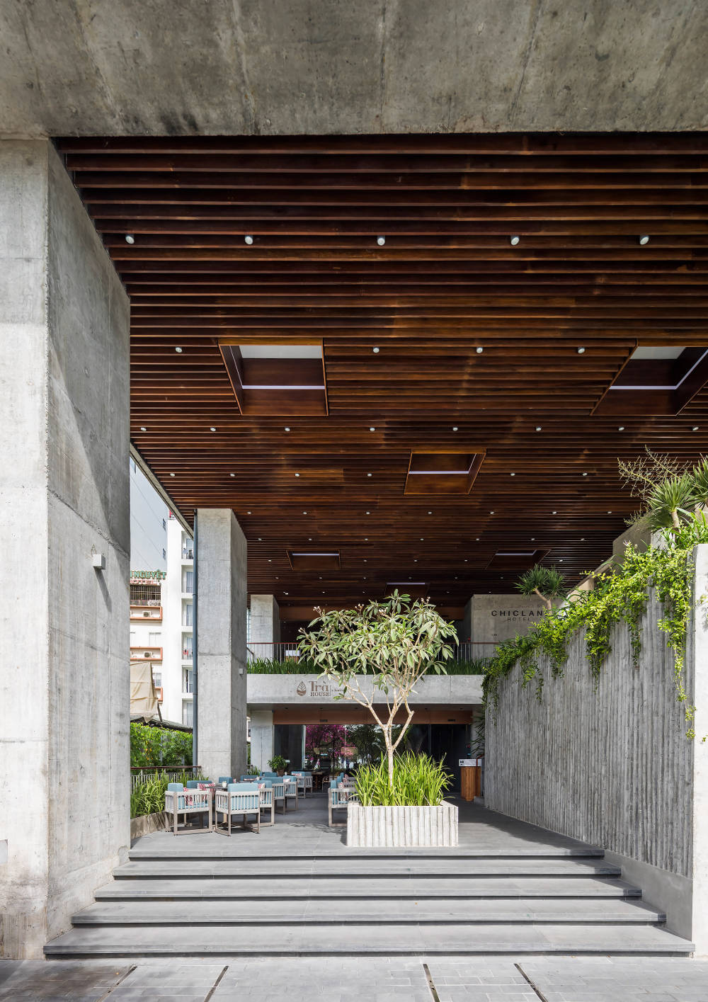 Ciri khas Vo Trong Nghia yang sering menggunakan tanaman dalam proyeknya tentu menjadi alasan utama mengapa balkon dari Chicland ini diselimuti oleh tanaman tropis. Berkat hal ini semua kamar yang tersedia, mulai dari yang biasa hingga larger apartment-style suites memiliki pemandangan yang indah entah itu menghadap ke laut atau ke daratan.