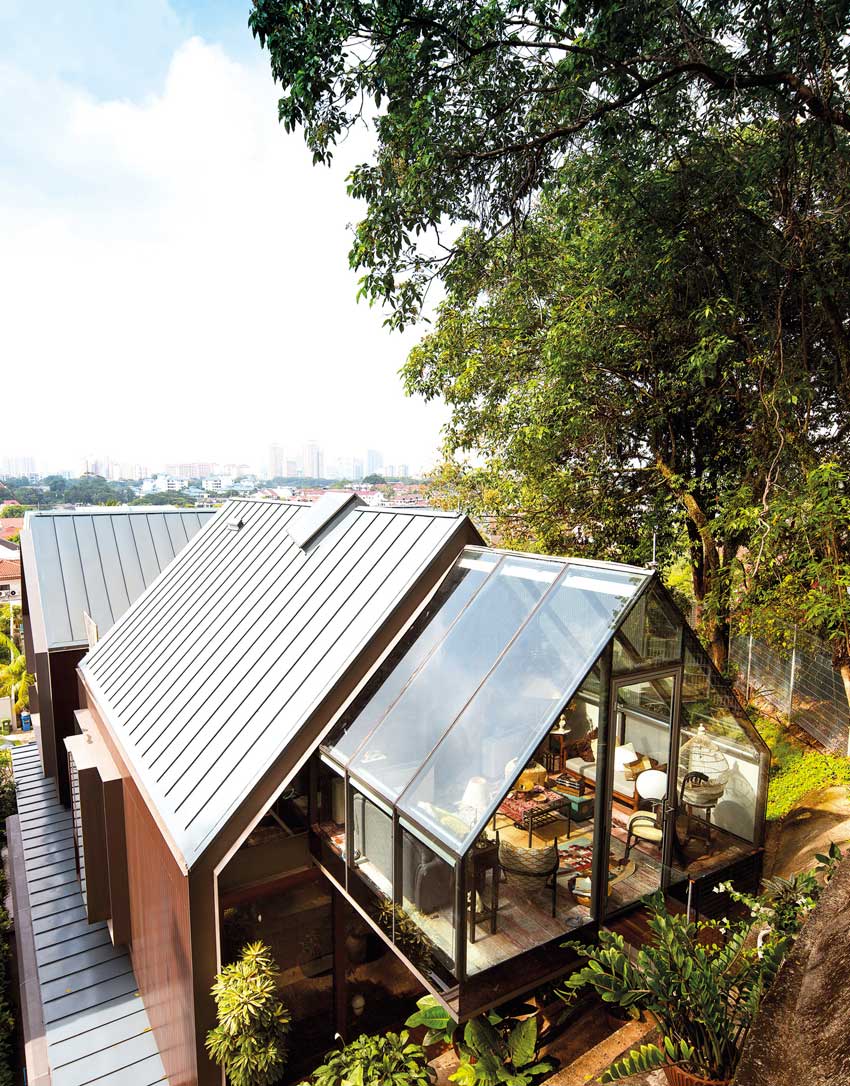 Jika berada di lingkungan perumahan yang sejuk, pemeberdayaan udara dan pemandangan wajib dieksplorasi. Material kaca pada ceiling atau atap sangat mampu mengurangi penggunaan lampu di siang hari. Tak hanya itu, kita juga dapat menikmati keindahan langit pada malam hari.