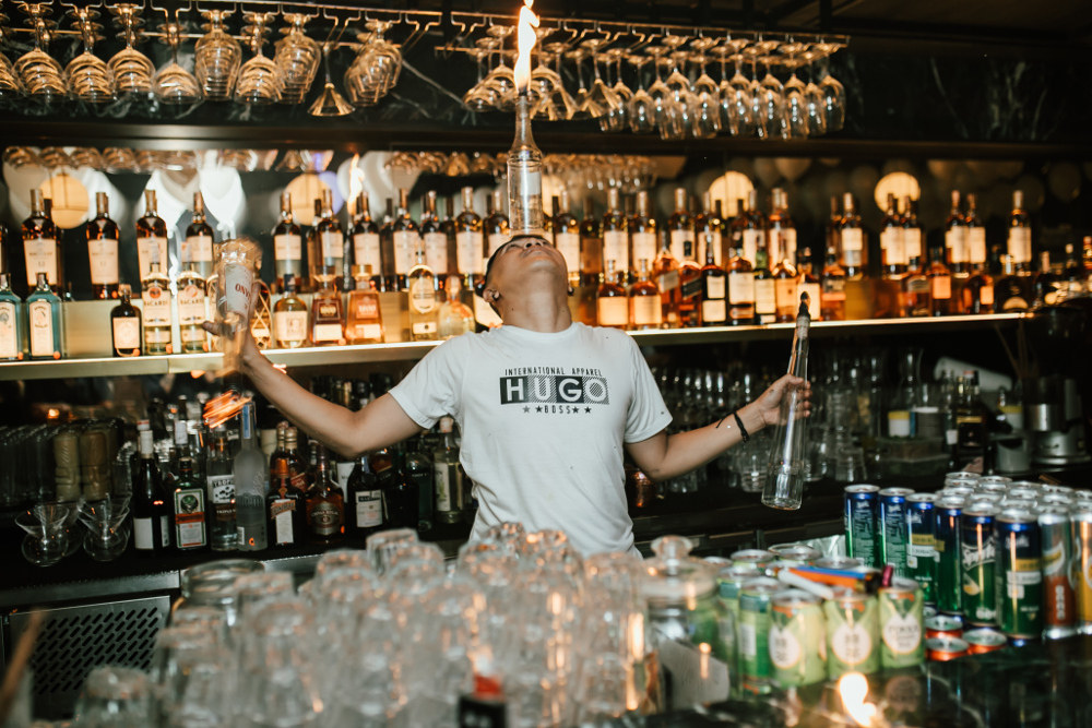 Kota Jakarta di malam hari menjadi pemandangan utama para tamu saat menyeruput minuman yang tersedia sembari menikmati program hiburan yang ditampilkan oleh sang DJ.Â