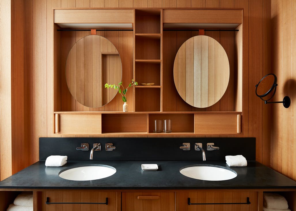 Kayu menjadi paras utama yang menyelimuti bagian kamar mandi / Stephen Kent Johnson