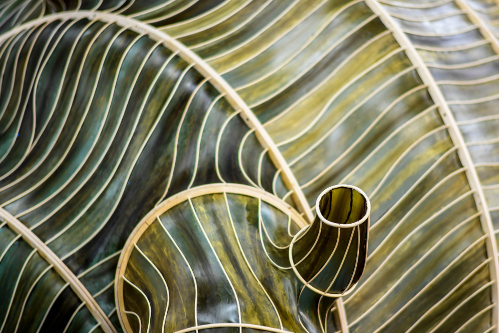 Dinamakan Hidaka Ohmu, paviliun berbentuk jantung yang diselimuti rumput laut dan dibingkai oleh rotan ini dapat menggambarkan kulit yang bisa meregang.