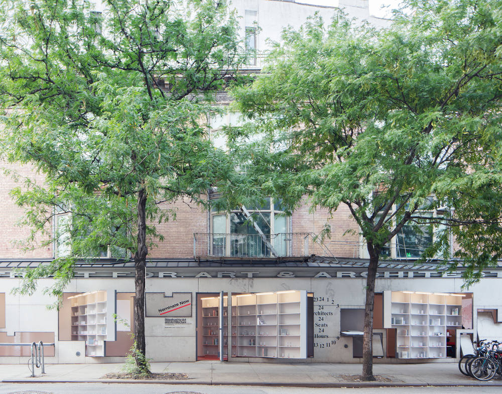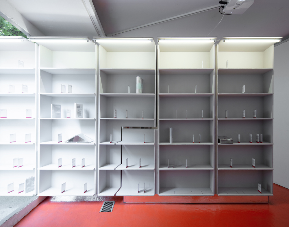 Konsep instalasi yang tetap mengedepankan sisi arsitektur dan desain ini memperluas panel fasad ikonik yang berputar di galeri menjadi sebuah rak buku yang keluar ke trotoar. Melalui “Global Survey”, Instalasi tersebut diisi pilihan buku arsitektur ikonik yang diterbitkan selama 35 tahun terakhir.