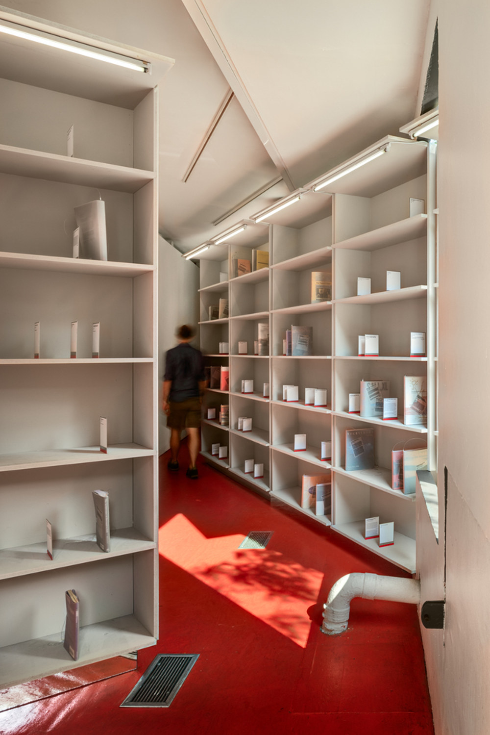 Selain terdapat buku-buku yang terpanjang, Abruzzo Bodziak juga merancang Book Props berbentuk cermin unik yang berfungsi sebagai penanda nonkontekstual untuk kronologi dalam pameran ini.