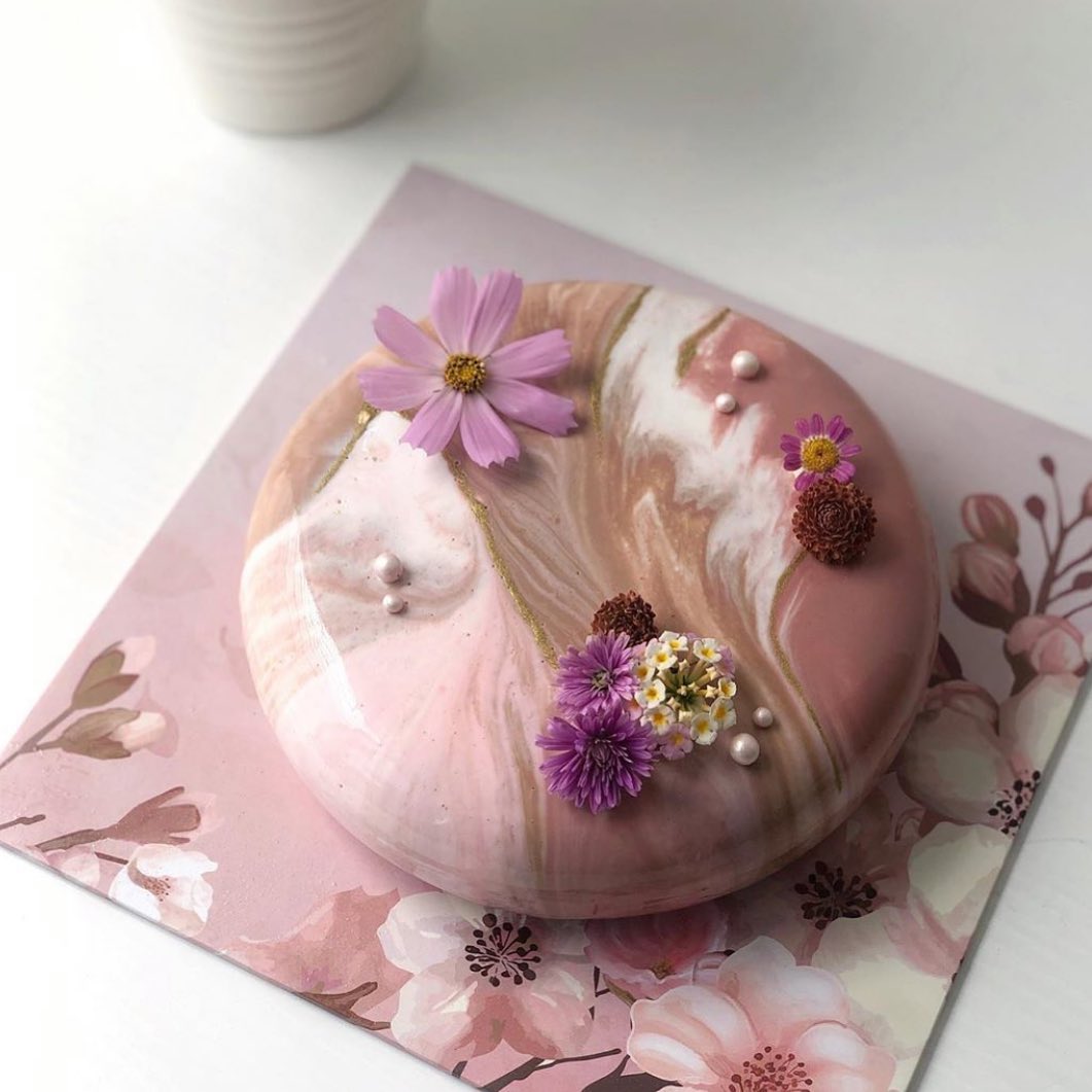 Mirror cake glaze, begitulah mereka menyebutnya. Sebuah kue yang ditutup oleh glaze yang mengkilat terbuat dari condensed milk atau gelatin yang dituang ke atas kue yang sudah mengeras. Toko kue yang telah ada sejak tahun 2017 ini ternyata dimulai dari satu orderan plain white cake-boards yang berlangsung menjadi colorful-themeful-cake-boards yang salah satunya adalah mirror cake glaze yang cantik ini.