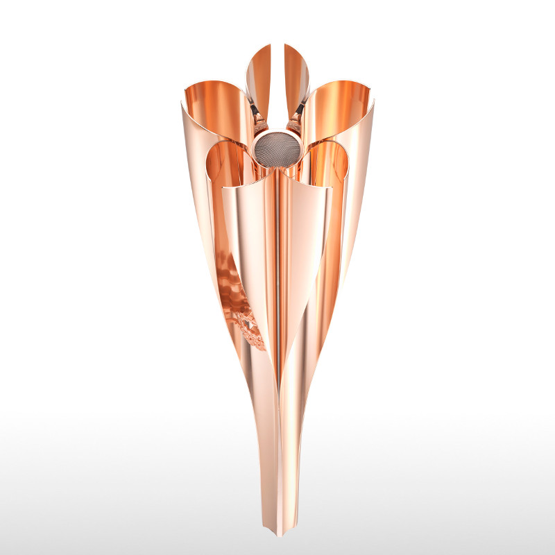 Obor setinggi 71 sentimeter dengan warna rose-gold ini menampilkan ornamen lima sudut pada bagian kepala. Ornamen tersebut menyerupai bunga sakura, bunga nasional Jepang.