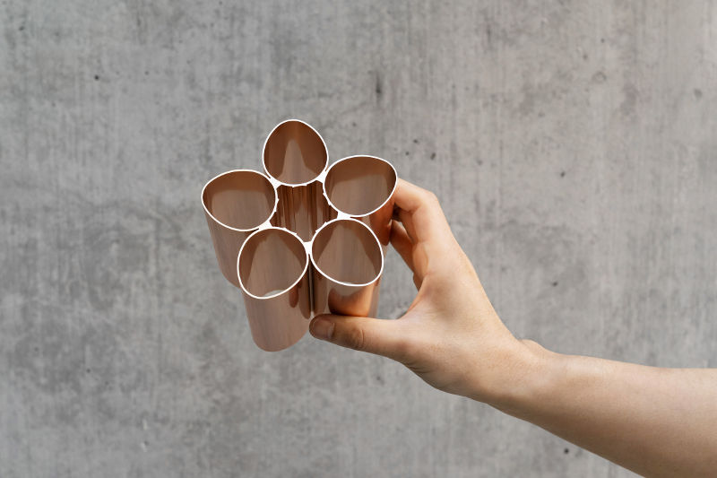Untuk membuatnya, Yoshioka menggunakan teknik aluminium extrusion, yakni teknik pembentukan material dengan memaksa material tersebut melewati cetakan untuk mencapai bentuk yang diinginkan.