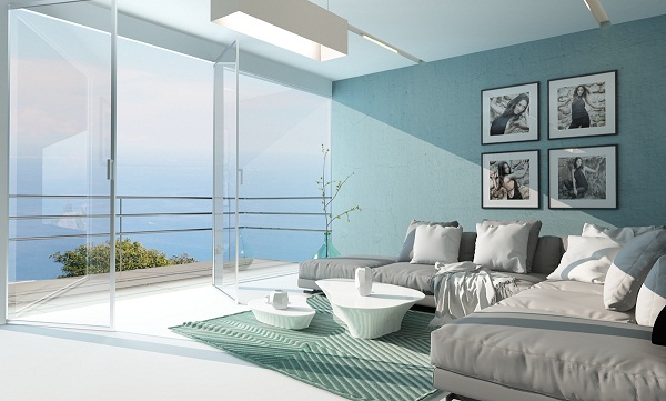 Selain jendela yang besar, gaya interior ini juga memiliki pintu dengan bukaan yang cenderung besar dengan dan balkon terbuka yang luas. Warna biru dapat diaplikasikan pada gaya interior ini untuk memperkuat kesan coastal pada ruangan.