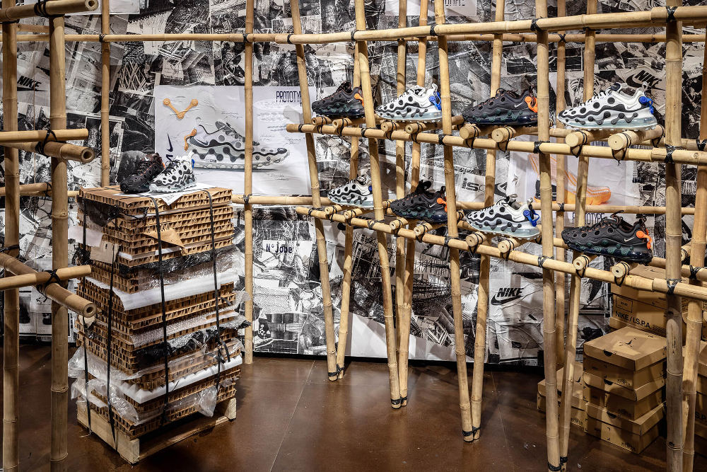 Instalasi yang berada di dalam toko Nike’s ISPA ini telah muncul di New York, London dan Toronto dengan memakai material yang berteknologi rendah.