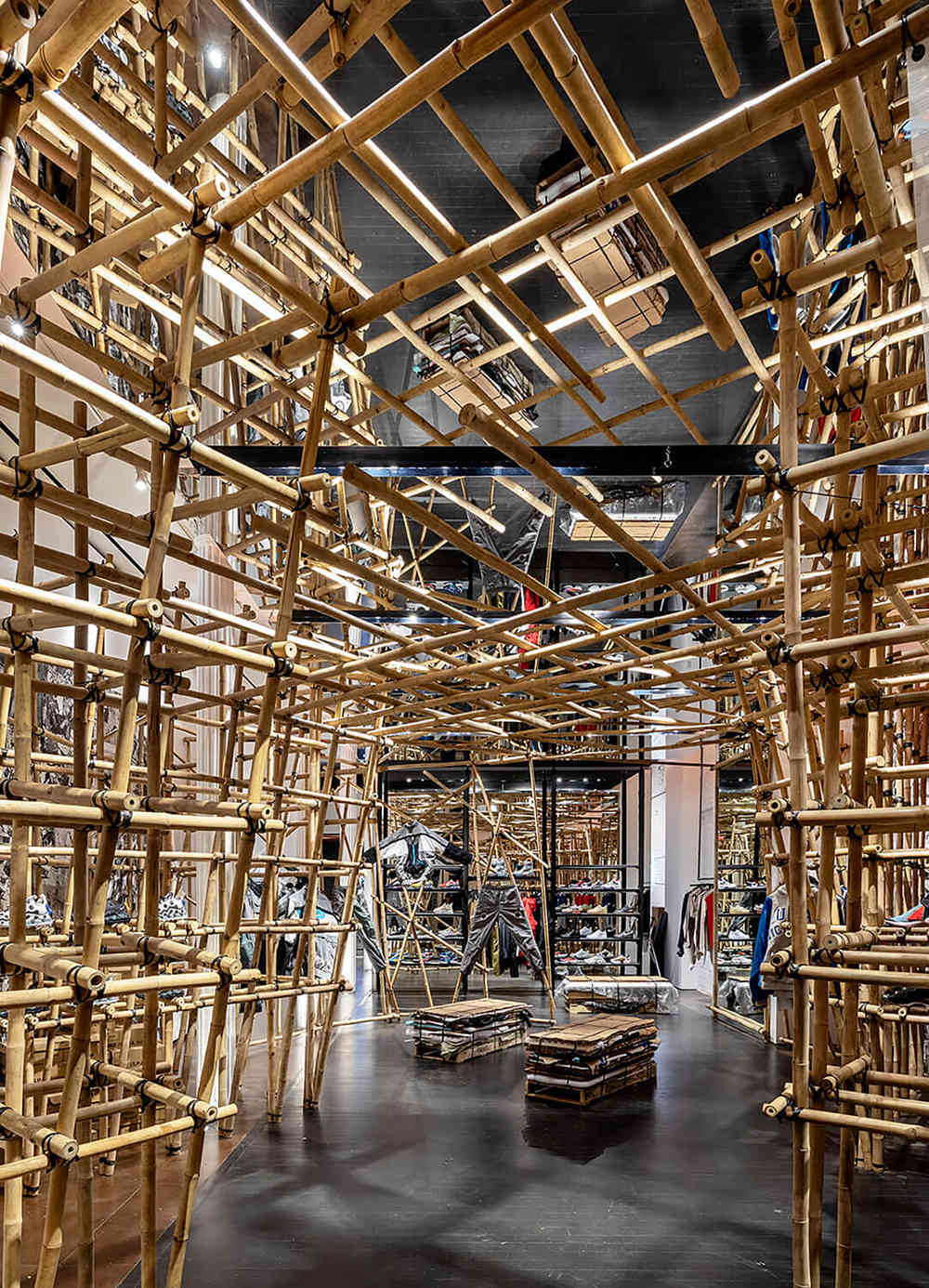 Namun, jangan meremehkannya, instalasi yang terbuat dari bambu ini sangat kuat dan dibuat oleh kolaborasi perkembangan teknologi dan sebuah teknis yang tidak lupa memakai imajinasi manusia. Dari sinilah mereka ingin mengingatkan para pengunjung atau pecinta merek ini bahwa terdapat teknologi luar biasa yang udah ada (seperti Flyknit atau Air Max 720 bag) ini tidak dapat terwujud jika tidak ada elemen tangan manusia dibelakangnya.