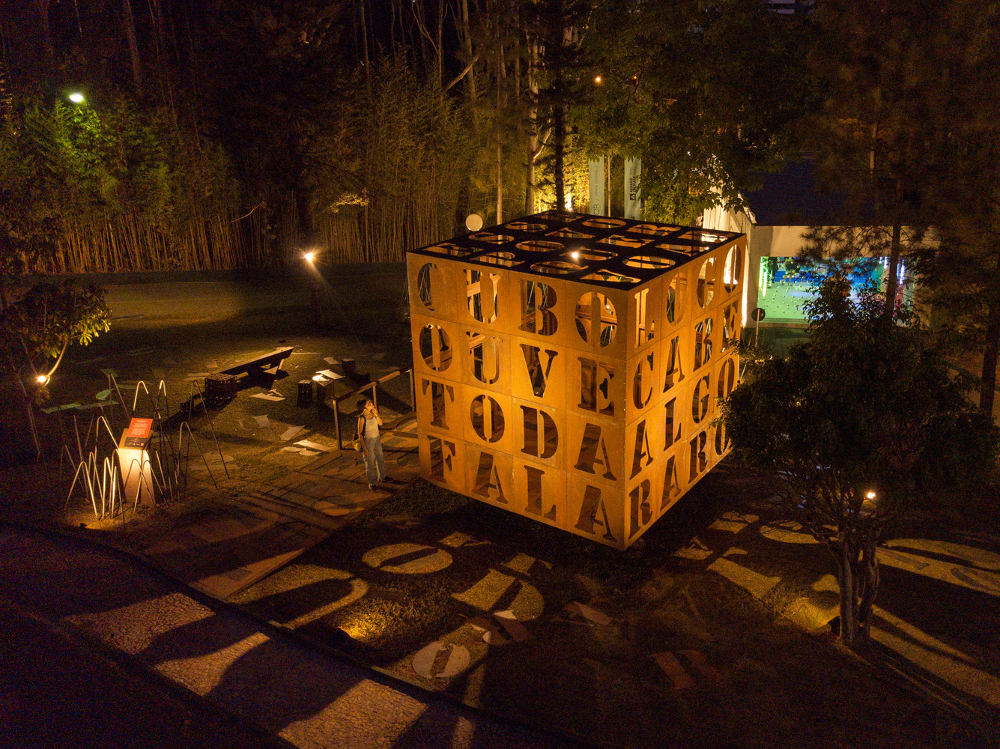 Keenam sisi kubus ini mengundang para pembaca untuk menemukan teks Portugis (dengan terjemahan bahasa Inggris) yang akan diiringi oleh sebuah soundtrack yang diciptakan dan dimainkan langsung oleh sang arsitek. Soundtrack itu juga dikolaborasikan dengan pidato untuk memperkuat pengalaman yang berbeda saat mengunjungi instalasi ini.