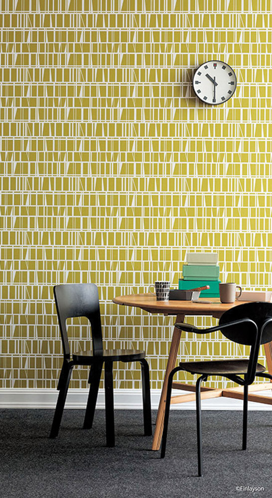 Wallpaper yang dirancang di Finland dan dibuat di Jepang ini menawarkan dua motif, yaitu Coronna dan Elefantti.