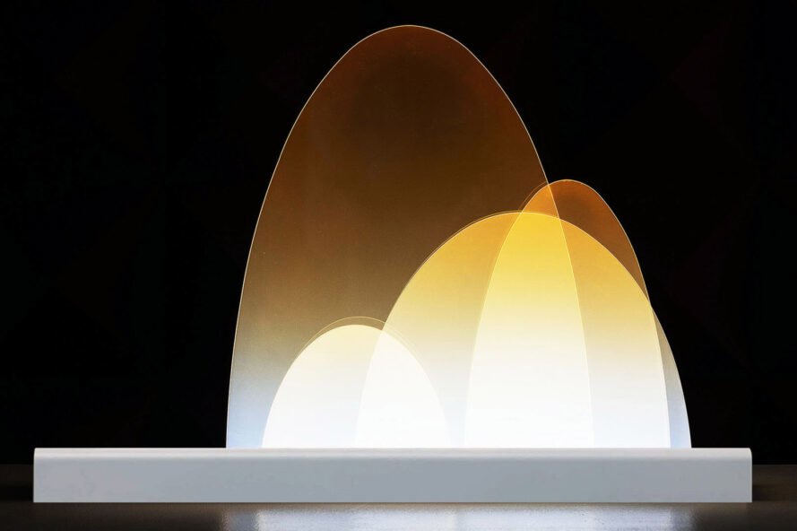 Hal tersebutlah yang membuat lampu pembersih udara ini dibentuk menyerupai gunung. Susunan akrilik dengan tebal 5mm yang membentuk pegunungan memendarkan cahaya dari lampu LED low-voltage yang berada di bagian dasar lampu.