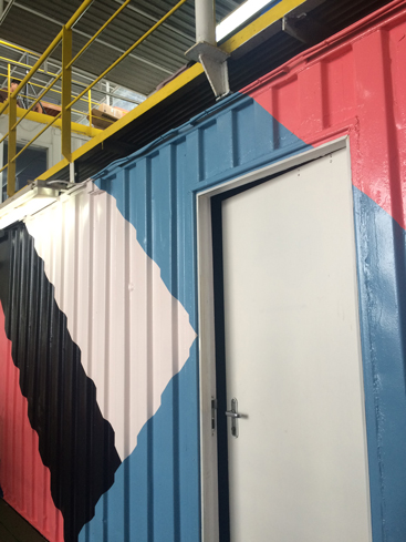 Sinta Tantra yang dikenal memiliki ketertarikan pada warna dan komposisi bereksperimen membuat mural ini dengan terinspirasi dari kapal kamuflase yang sering digunakan saat Perang Dunia Kedua. Mural karya seniman yang lahir di New York ini memiliki motif garis-garis simetris dengan beberapa pesan yang disimbolkan melalui warna.