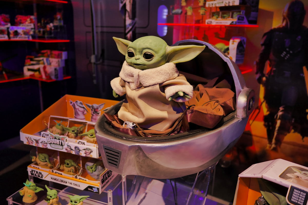 Baby Yoda – meski tidak ada hubungannya sama sekali dengan Yoda dari seri Star Wars, akan diproduksi oleh perusahaan mainan Hasbro dalam bentuk boneka animatronik.