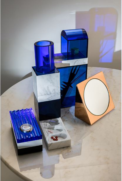 Selain amenities, Tom Dixon juga merilis aksesori kamar mandi dan lampu spot khusus yang didesain menyesuaikan area basah seperti kamar mandi dan dapur. Dengan tampilan warna biru, white marble, dan aksen kuningan, aksesori ini menjadi daya tarik tersendiri di kamar mandi.Â