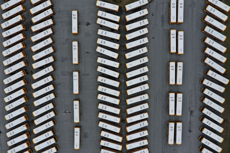 5. Ditutupnya sekolah-sekolah di Maryland, AS membuat sedikitnya 200 bus sekolah diparkir di Montgomery County Schools Clarksburg Bus Depot.