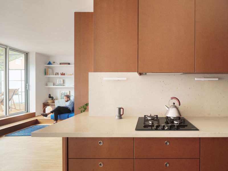 Namun ketika Le Corbusier menempatkan sink tersebut atas dasar kebersihan, Marina & Andres menginginkan sink dengan permukaan custom terrazzo Huguet Mallorca tersebut sebagai elemen desain yang mengejutkan.