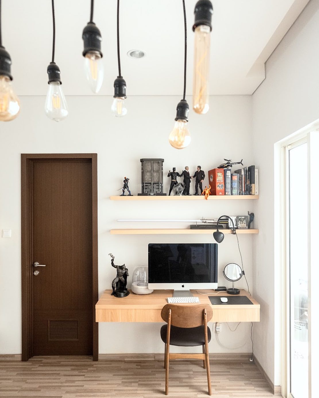 Jika tidak memiliki ruang khusus, Anda bisa menyulap meja makan atau island kitchen sebagai meja kerja. Hindari mencampuri tempat bekerja dengan tempat bersantai seperti sofa dan kasur agar Anda dapat membedakan kapan waktu kerja dan istirahat.