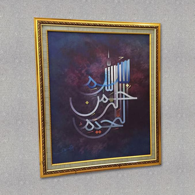 Biasanya, kaligrafi digital printing ini menggunakan material kanvas yang dibingkai oleh pigura. Anda bisa menggunakan desain kaligrafi berjenis ini untuk mendapatkan kesan minimalis di ruang keluarga.