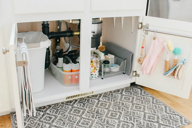 Area bawah wastafel merupakan salah satu area yang sering dilupakan, tetapi ini menjadi satu-satunya area Anda “menyembunyikan” produk pembersih rumah. Gunakan kompartemen bening seperti clear bins atau acrylic bins untuk mengkategorikan setiap produk dan mempermudah untuk mencari produk pembersih yang Anda butuhkan.