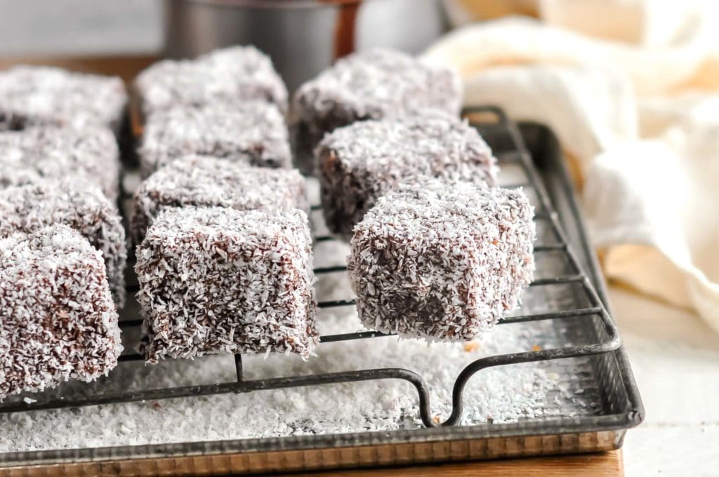 19. Lamington, kue ikonik asal Australia yang dilapisi cokelat dan kelapa parut kering di bagian luar
