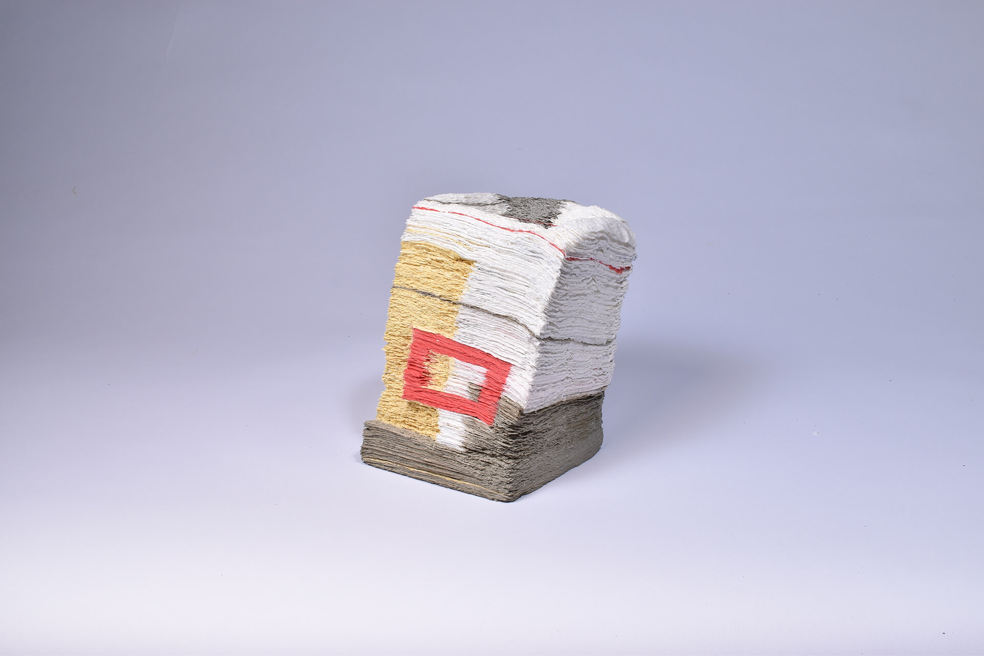 Karya penuh warna yang terlihat berlapis-lapis ini dibuat menggunakan material yang mudah ditemukan, yakni kertas dapur.
